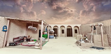 Al-Ammariya: A trellis made of palm fronds, commonly seen in the old Gharballi market. Its purpose was to protect the seller from the sun. It was mounted on two wooden poles and at the end of the day, the seller would carry it with him. It was important for caravans coming from the desert, where they would sell ghee, clotted cream, locusts, truffles, wool, jujube, and some desert plants with medicinal uses.