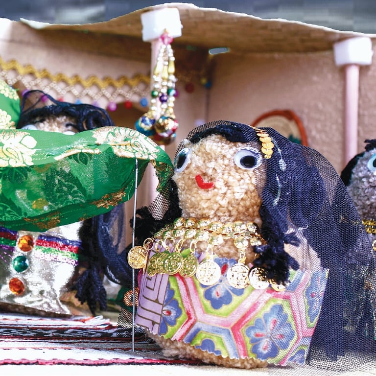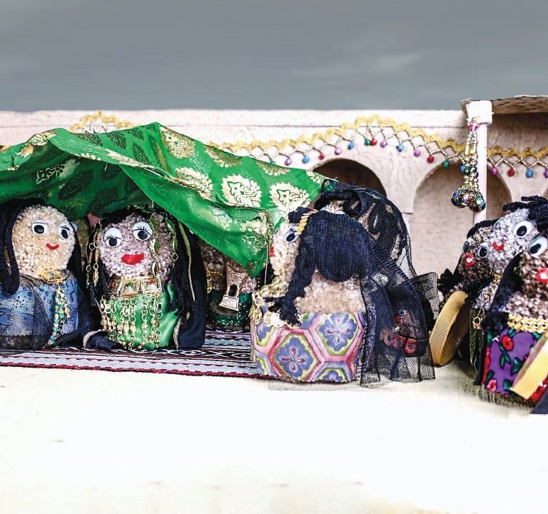 The wedding night is the night of a lifetime that every girl waits for, as they say. In the past, the preparation and outfitting of the bride in Kuwait was known as Al-Jalwa or Al-Yalwa in the Kuwaiti dialect. At sunset, the henna night ceremony begins, and a large number of the bride's relatives gather. Al-Jalwa is a collection of songs and chants accompanied by prayers sung by women during Al-Jalwa to celebrate the bride. The bride sits on a chair after wearing a bright green dress with full jewelry and gold. Four women come with a large square piece of green cloth decorated with gold threads and on it some phrases such as "May happiness come" and other phrases. Each of these four women holds an end of the cloth and lowers it over the bride's head, chanting this chant that contains praise and prayers for the bride. The women chant: