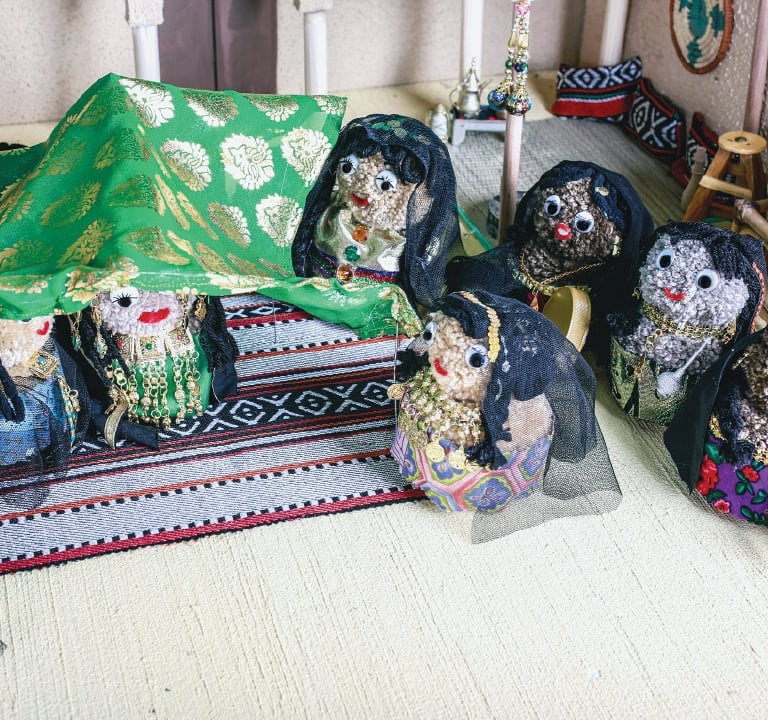 The groom's family prepares the dowry, which is made up of a dowry whose value varies according to the bride's financial situation. The "bagsha" is part of the dowry and contains six to seven pieces of cloth and two abayas, in addition to jewelry, bed sheets, towels, and other wedding necessities. On the day of presenting the dowry (bagsha), it was customary for the groom's mother to go with her village and some women relatives to the bride's house to present the dowry.