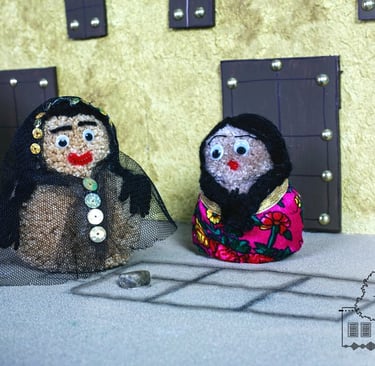 It's a game between two or more players, played in multiple stages. A rectangle is drawn on the ground, divided into six squares or houses. The player stands at the first square, holding a flat piece of stone or pottery called a "rababaza." Her partner, who is dueling with her, stands outside the squares, waiting for her turn. The player begins by throwing her rababaza into the first house, then hops around, kicking the rababaza with her foot to the second house. She follows it with a hop, then to the third house, then to the fourth, until the last, provided she reaches her starting point without stepping over the dividing lines, landing with her other foot in one of the houses, or letting the rababaza rest on a line or stepping outside of it. If any of these things happen, she fails in her game, and it is the turn of the second player to exchange performance. After that, the game is repeated, throwing her stone into the second house and performing the same role she played in the first round, then to the third house, then to the fourth, until the sixth house. In all rounds, she hops through all the squares on one foot. Then she stands at the first house with her back to it and throws her stone at one of the houses. If it lands in one of the houses, it becomes hers, and she has the right to step on it with both feet as she passes by. Her random throwing is repeated until she owns all the houses where the stone lands. At that point, the game ends and she starts over again. The game continues, taking turns with her friends.