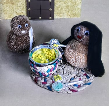 It's a popular profession among women. They sell cooked bajla and nakhi (beans and chickpeas) and place them in a small plate, adding black pepper. The sellers would sit on poles in the neighborhoods.
