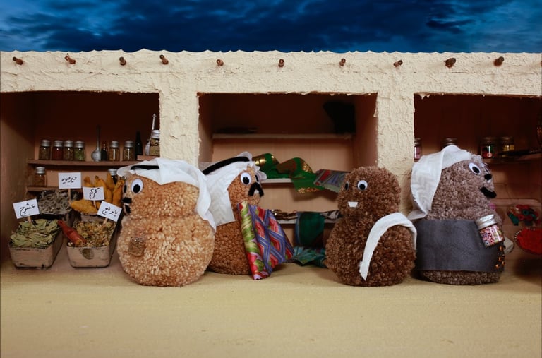 The attar (or hawaj), as they are called locally, is a person who sells special types of various wild plants, grains, dried fruits, and the peels of certain fruits, such as pomegranates and oranges, as well as other materials primarily used in the preparation of medicines. They also offer other products, such as spices, seeds, dyes, and the like. The attar is usually an expert in preparing herbs (medicines) and other mixtures used in various fields, some of which are imported from India, Iran, Yemen, Saudi Arabia, and the Kuwaiti desert. Among the items they sell are thyme, basil, ox tongue, ginger, dried lime, anise, henna, cardamom, and lotus. Attars did not have their own market, but were spread throughout all of Kuwait's markets.