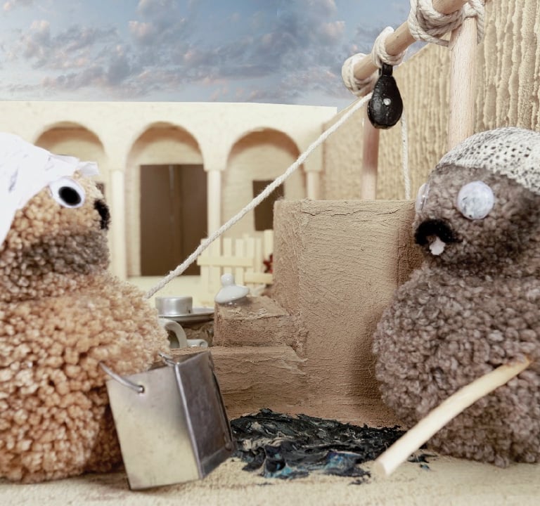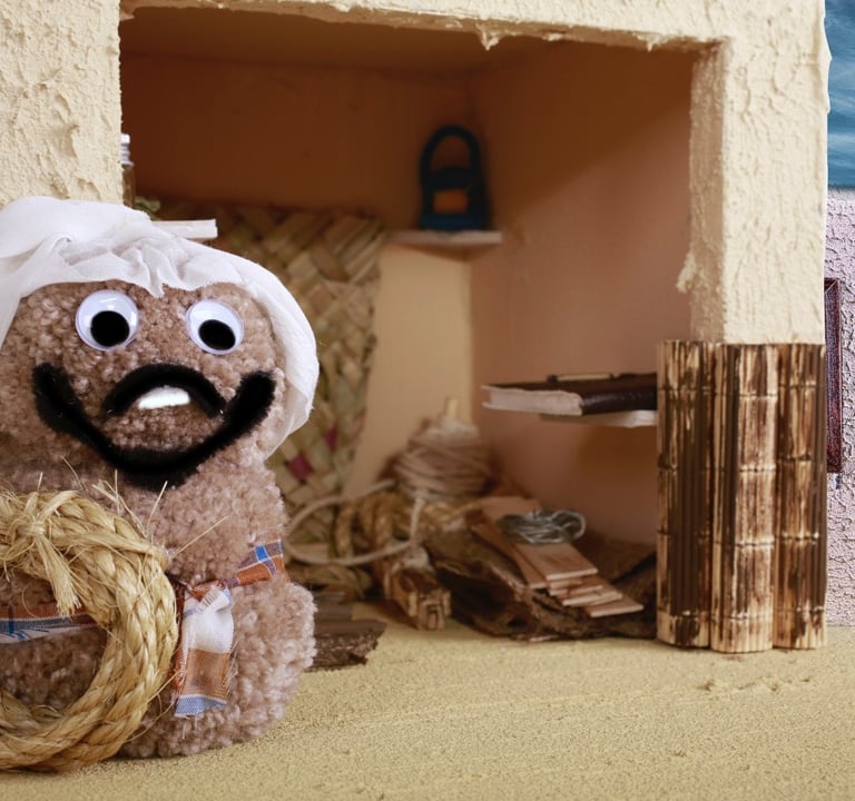Sheep herding is one of the oldest Kuwaiti professions. The shepherd gathers the sheep that come to him from the people of the neighborhood. Each neighborhood has its own shepherd who gathers them in the morning in preparation for leaving the neighborhoods to outside the wall, the wall of Kuwait City. After the sheep are gathered from each house in the neighborhood, the most important thing that the shepherd takes care of is the donkey, which is to transport his belongings inside the “Kharj,” which is a burlap bag to put the provisions (the shepherd’s food), and also to put the baby goats in it if it happens to be found. The shepherd of the gazelle is considered one of the most famous shepherds in the Jablah neighborhood. The shepherd of the mataba is also a famous personality, and there is a famous song that he used to sing to children when he was present, which is: